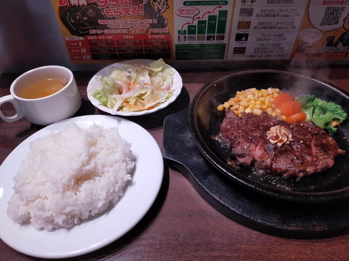 昨日は、食事券があったので、初の「いきなりステーキ」へ