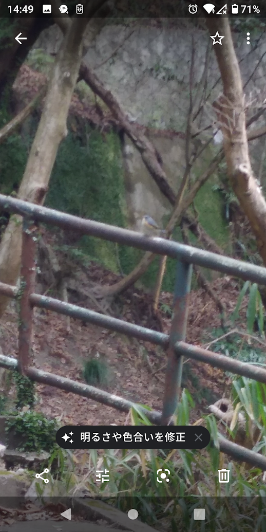 朝、大師道を歩いていると、燈籠茶屋さんの辺りの川沿いで、まずはルリビタキのメスを発見!!