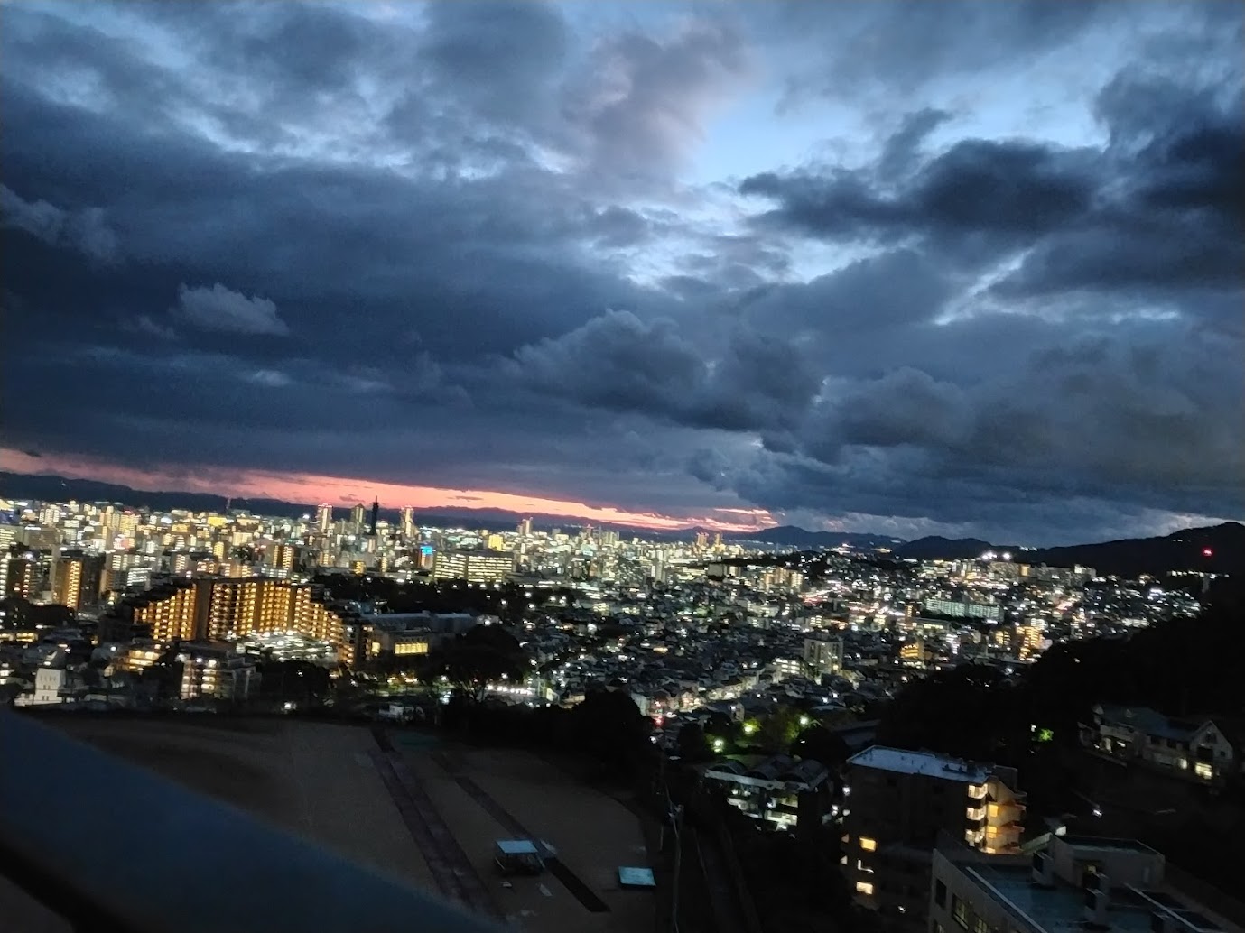 今日も夕方前に、土砂降りの雨に雹でしたが、帰りの大師道では、木々の間に真っ赤な夕焼け。諏訪山に降りても、夜の帳に赤い夕焼けが残っていました!