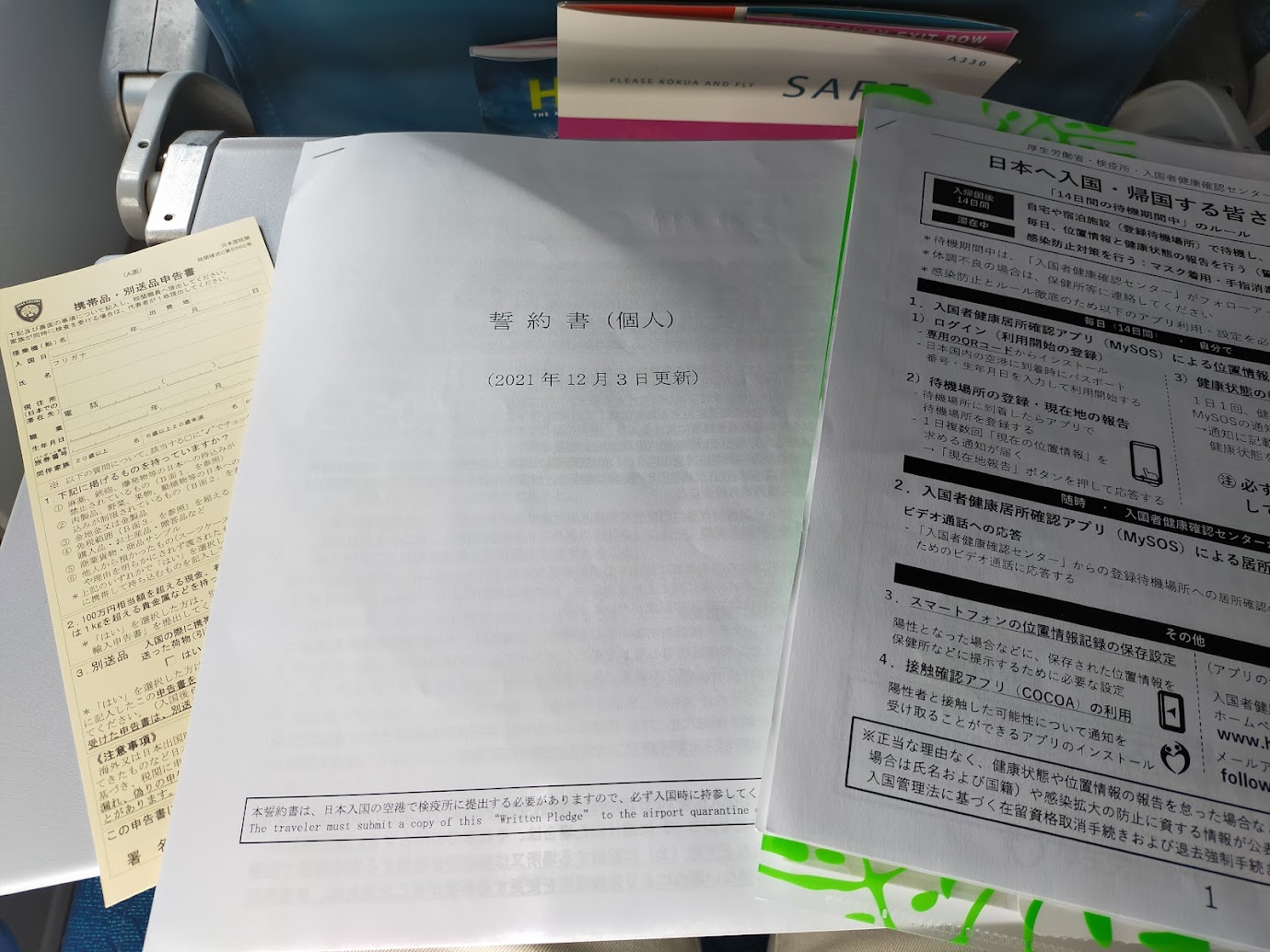 事前に配られていた書類、アンケート、入国者健康確認センターのアプリをダウンロード。