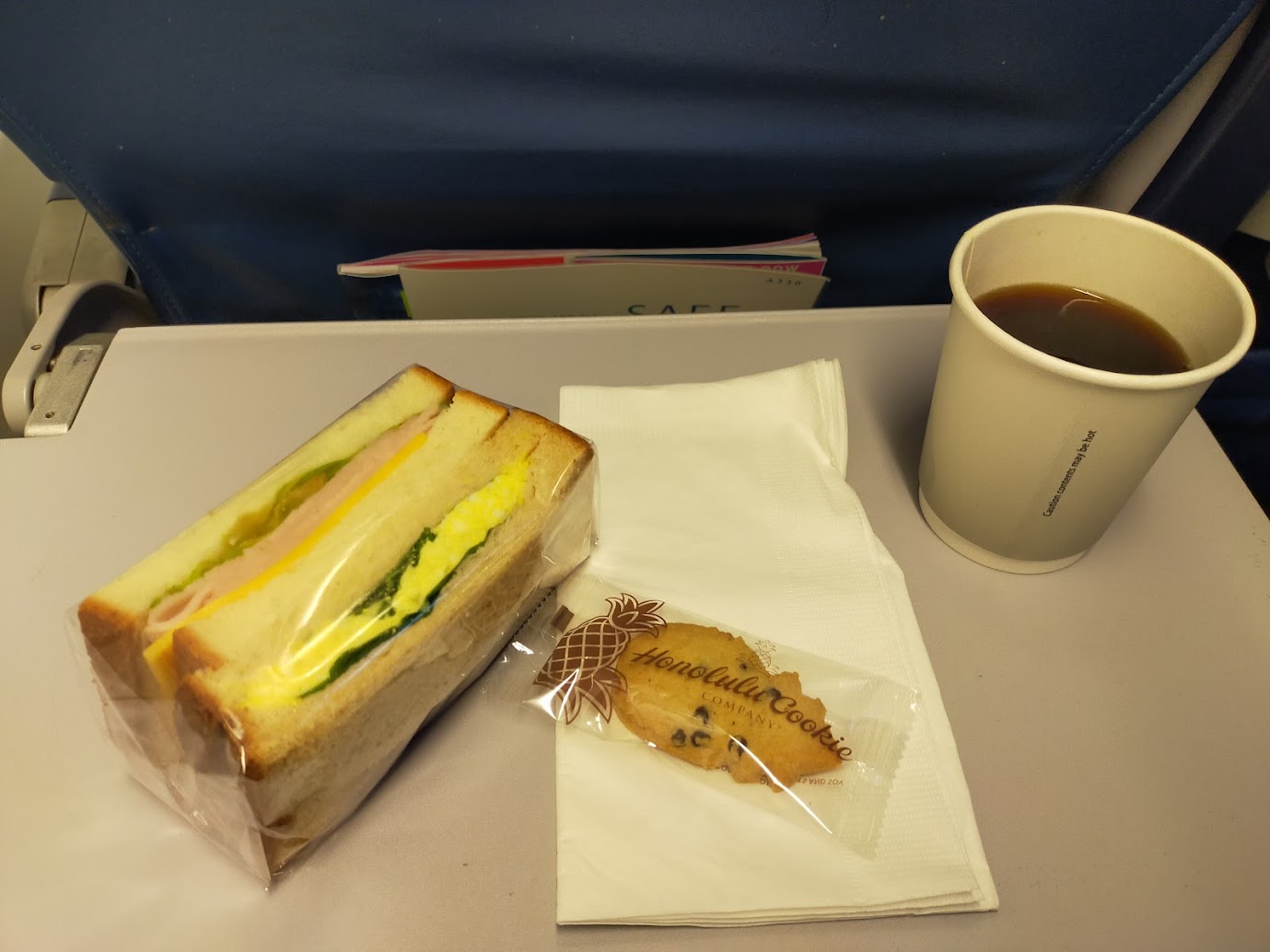 小腹もすいたので、サンドイッチとジュースを慌てて食べて、すぐに搭乗。