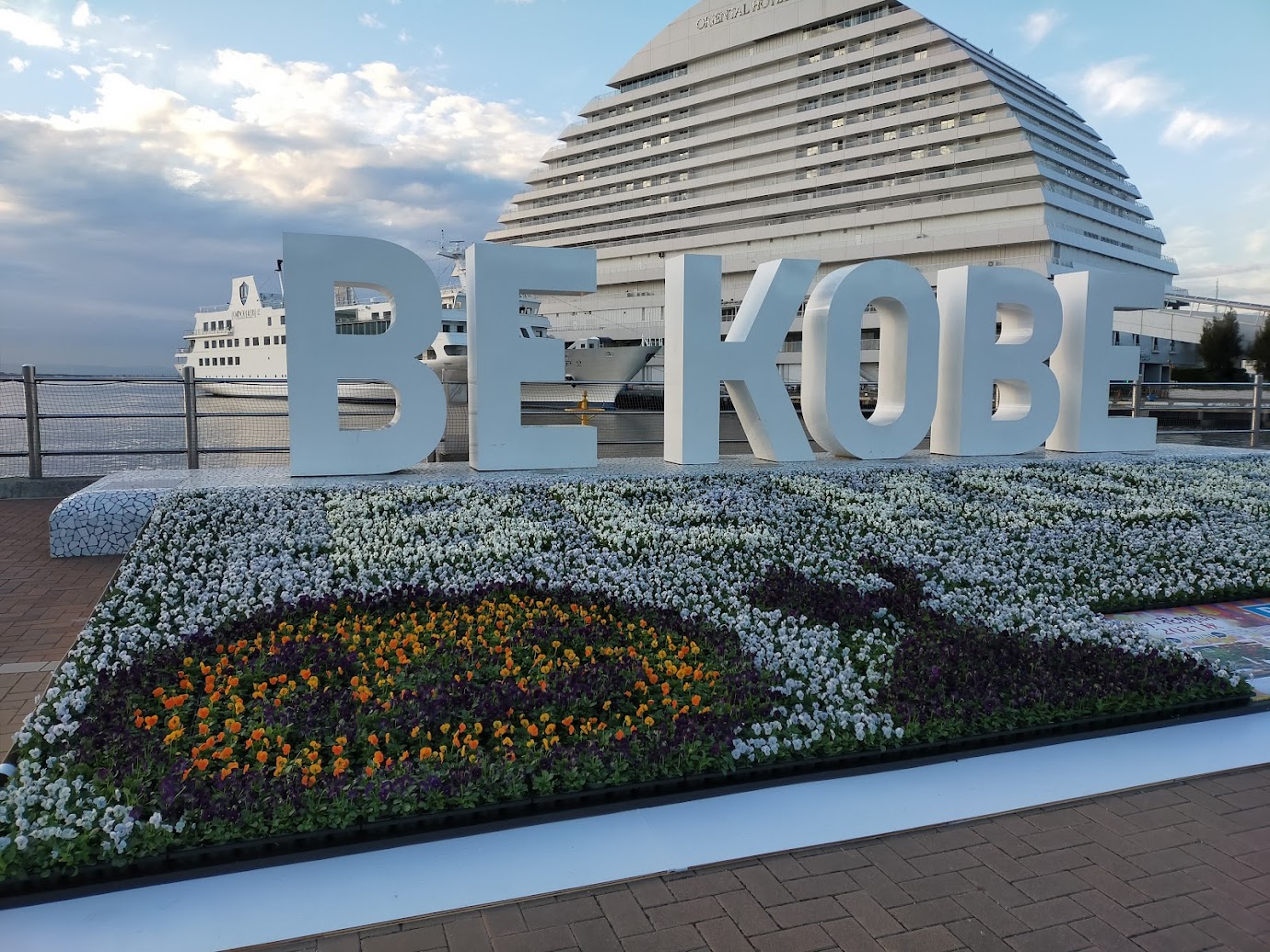 メリケンパークのBE KOBEのモニュメント前はハロウィンのお花。