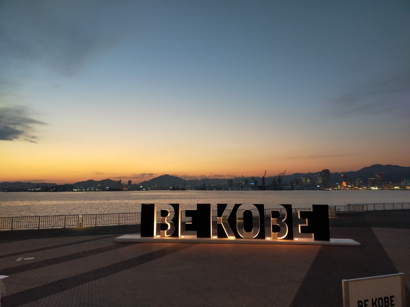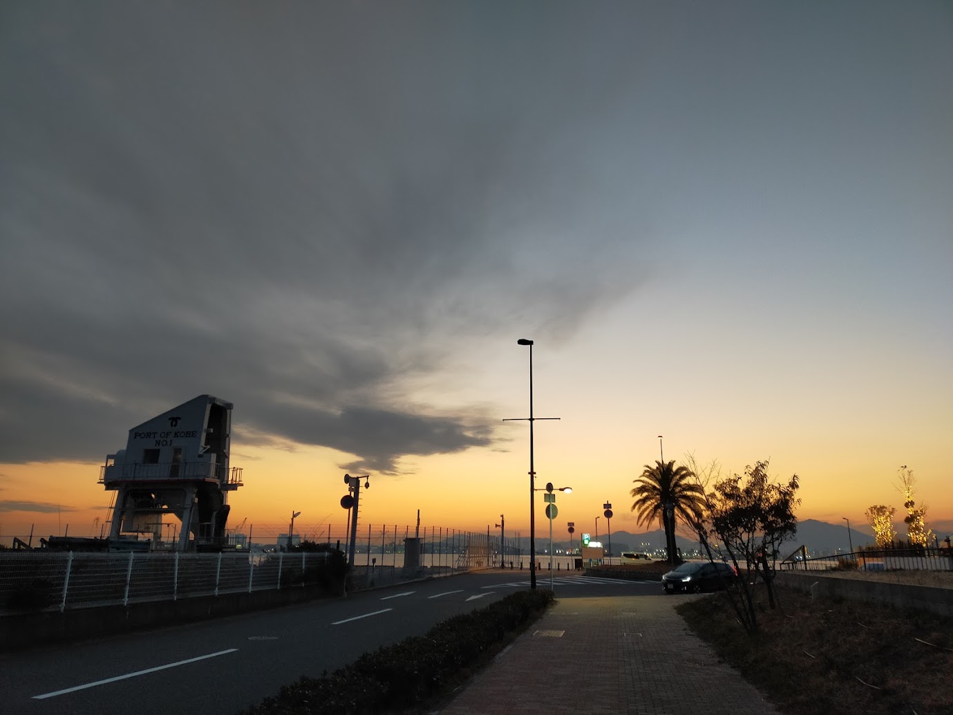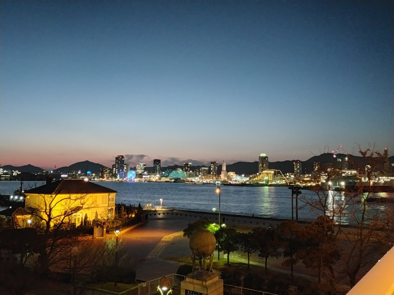 オレンジ色に染まった神戸港は素敵。