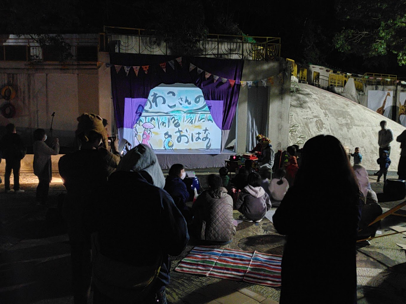 17時から、イベントで連動していた「諏訪山アートプロジェクト」さんの前夜祭があるということで、慌てて移動。7月のイベントで一緒に演奏した、タヌキ山ウクレレ楽団さんのステージを見に行きましたが、間に合わず。残念。諏訪子の紙芝居だけ見て帰りました。